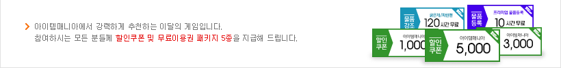 3. 매니아핫게임에서 지급되는 상품의 유효기간은 7일이며, 각 게임별 전용 쿠폰입니다.